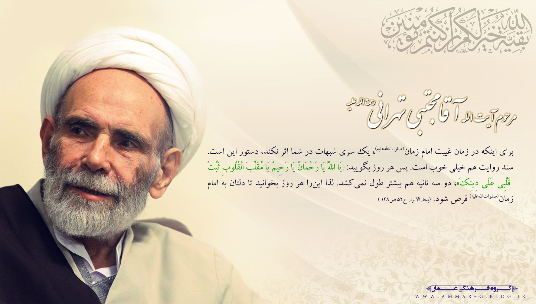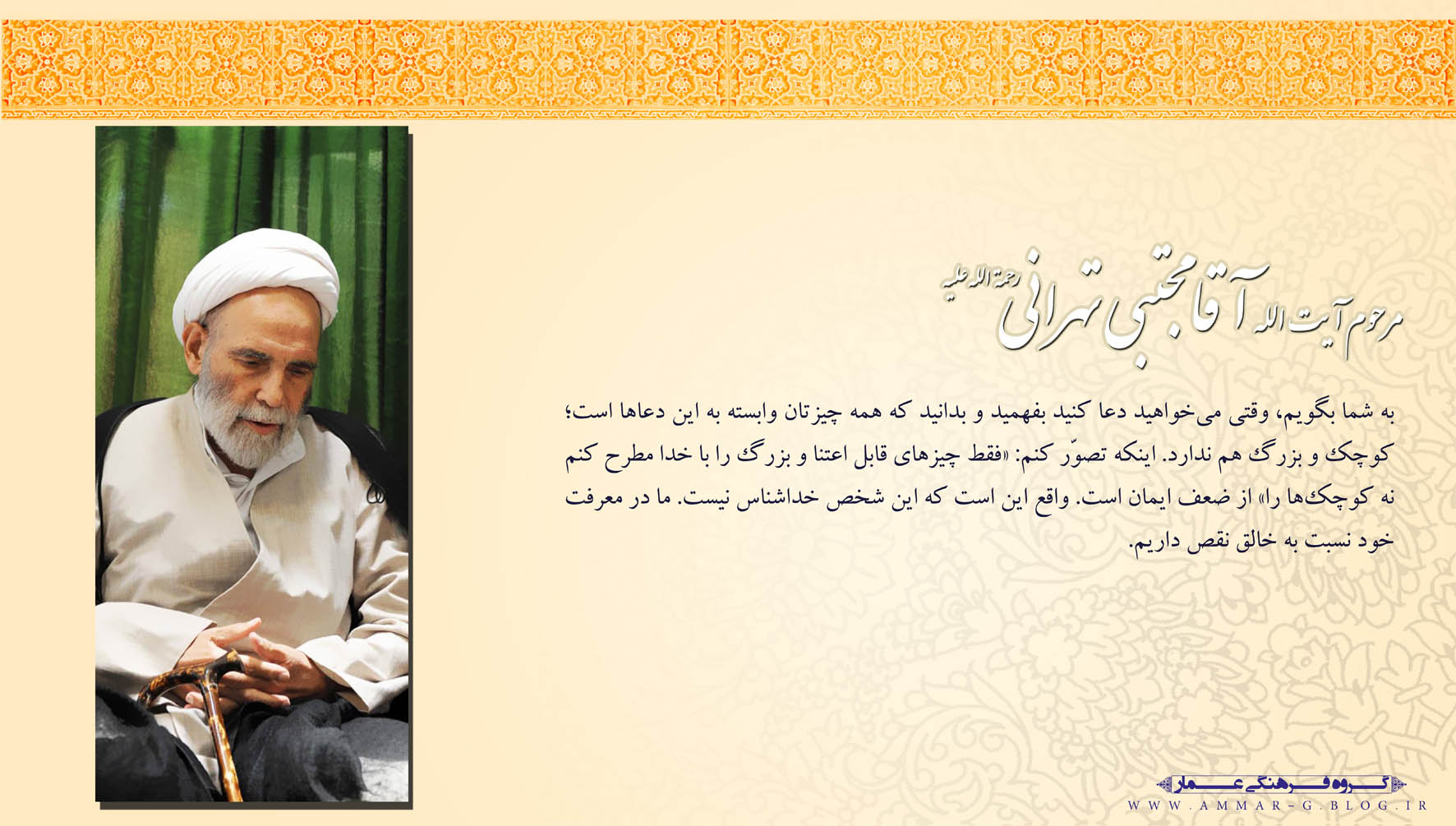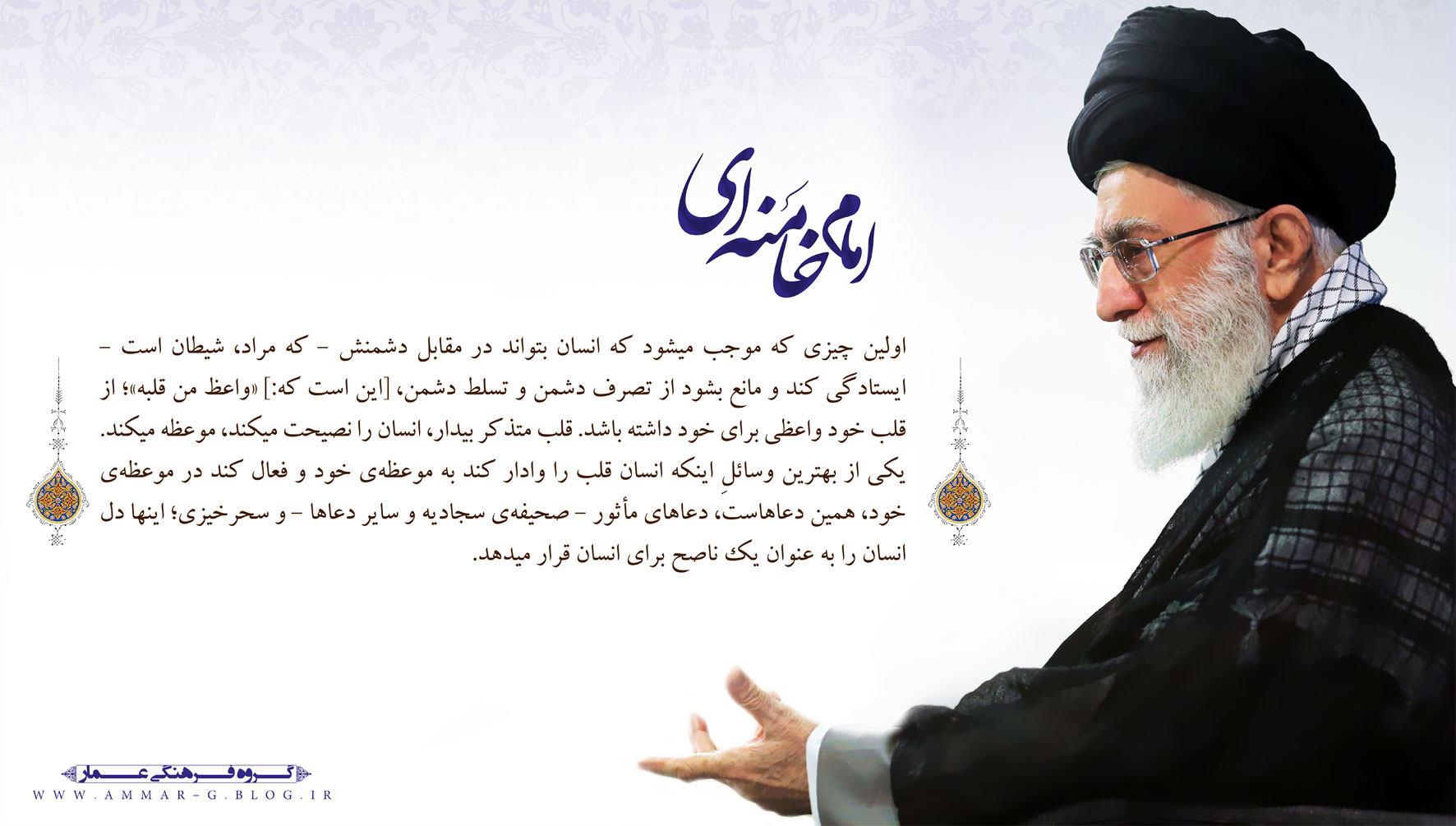 حضرت آیتالله خامنهای: «عزیزان! بسیاری از آنچه را ما دیده و آزمودهایم، نسل شما هنوز نیازموده است. ما دیدهایم و شما خواهید دید. دهههای آینده دهههای شما است و شمایید که باید از انقلاب خود حراست کنید و آن را هر چه بیشتر به آرمان بزرگش که ایجاد تمدّن نوین اسلامی و آمادگی برای طلوع خورشید ولایت عظمیٰ (ارواحنافداه) است، نزدیک کنید.» ۱۳۹۷/۱۱/۲۴