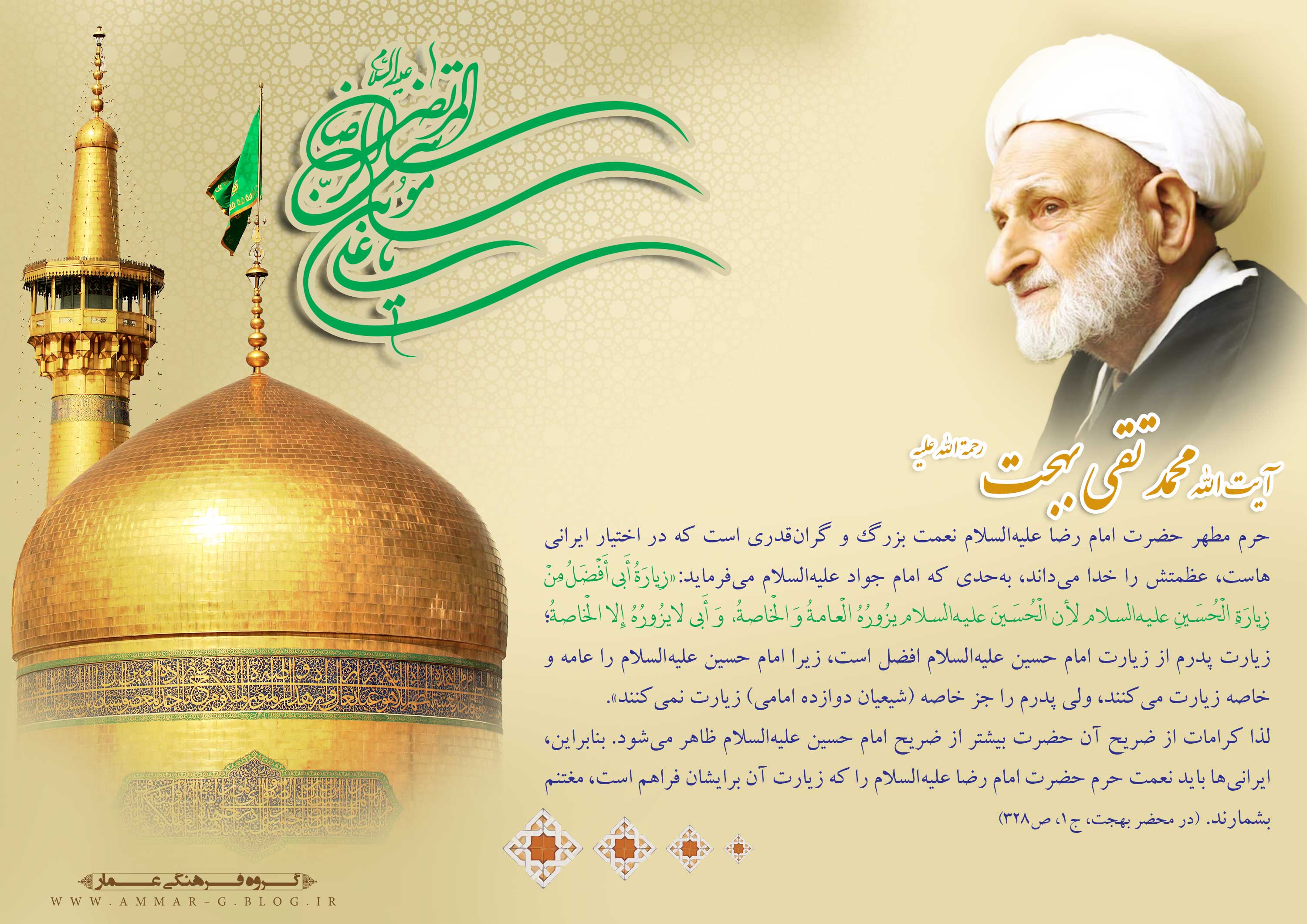 حرم مطهر حضرت امام رضا علیهالسلام نعمت بزرگ و گرانقدری است که در اختیار ایرانیهاست، عظمتش را خدا میداند،