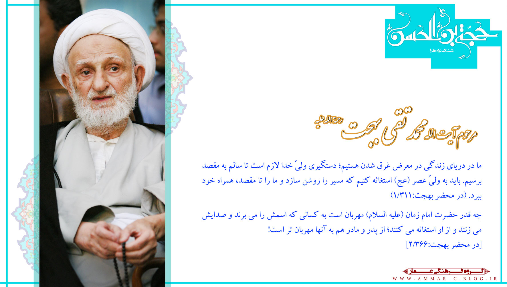 حضرت آیتالله خامنهای: «عزیزان! بسیاری از آنچه را ما دیده و آزمودهایم، نسل شما هنوز نیازموده است. ما دیدهایم و شما خواهید دید. دهههای آینده دهههای شما است و شمایید که باید از انقلاب خود حراست کنید و آن را هر چه بیشتر به آرمان بزرگش که ایجاد تمدّن نوین اسلامی و آمادگی برای طلوع خورشید ولایت عظمیٰ (ارواحنافداه) است، نزدیک کنید.» ۱۳۹۷/۱۱/۲۴