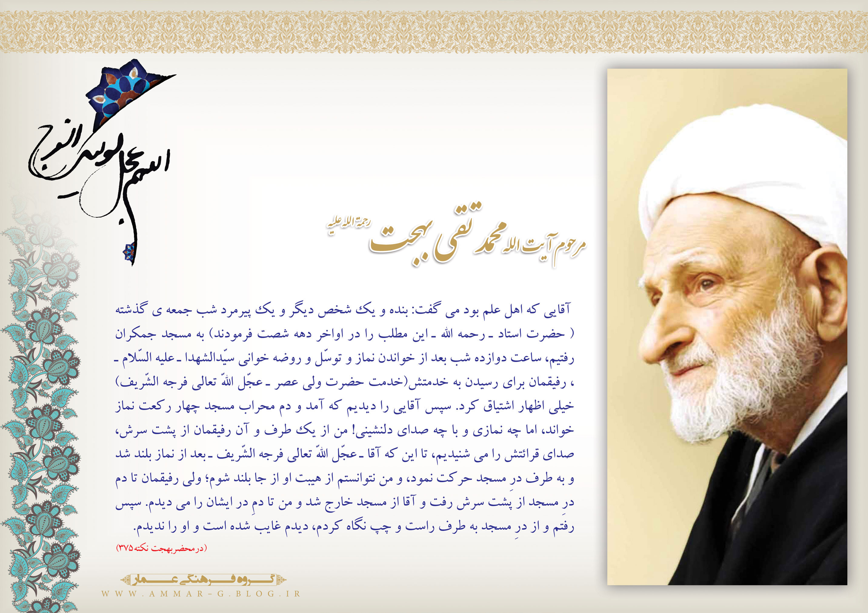 مرحوم آیت الله محمد تقی بهجت رحمة الله علیه